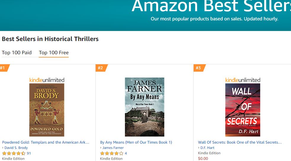 June 4, 2019June 4, 2019D.F. HartLeave a Comment on Wall Of Secrets hits #3 on Amazon’s “Top 100 Free” In Historical Thriller Category! Wall Of Secrets hits #3 on Amazon’s “Top 100 Free” In Historical Thriller Category! A huge THANK YOU to all whose support got it there! Share this: Click to share on X (Opens in new window) X Click to share on Facebook (Opens in new window) Facebook Like Loading... Related