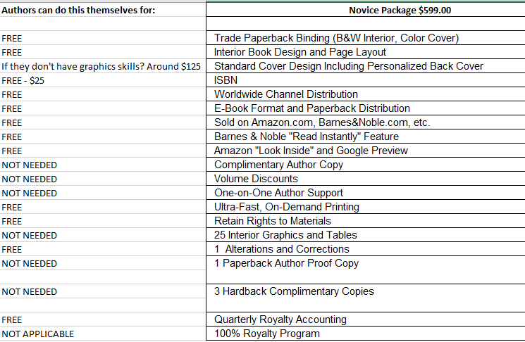 Below is Scammy Spammy Vanity Press’s lowest tier offering – and my rebuttal: